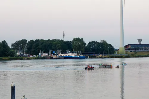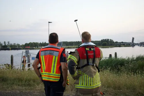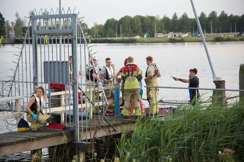 hulpdiensten op het Pontplein in Assendelft gearriveerd vanwege een aanvaring tussen twee boten,