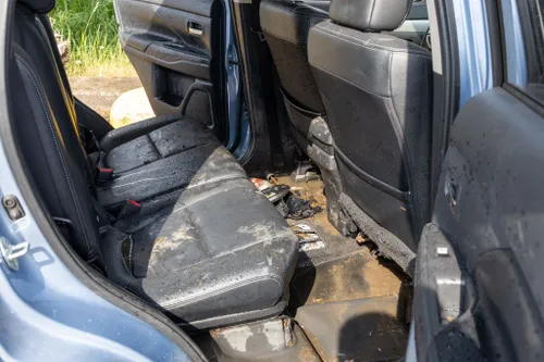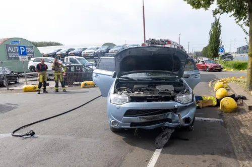 Een auto, die eerder betrokken was bij een verkeersongeval,