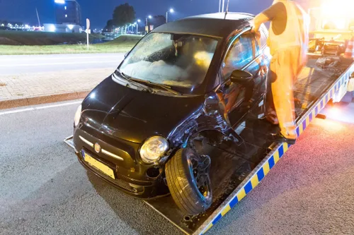 De auto raakte ook zwaar beschadigd. Deze is door een berger