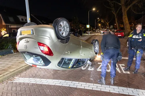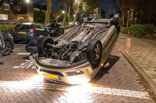 voertuig ondersteboven terecht en raakte daarbij een ander geparkeerd voertuig.