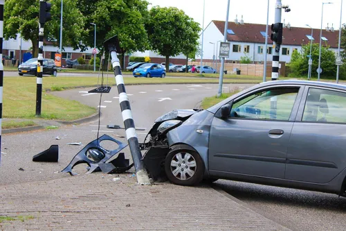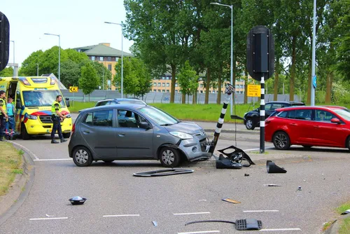 gebotst. Het verkeerslicht raakte als gevolg van de aanrijding buiten werking.