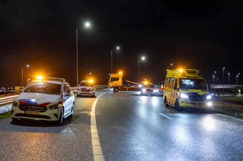 snelweg terecht. De hulpdiensten, waaronder het traumateam van de ambulance,