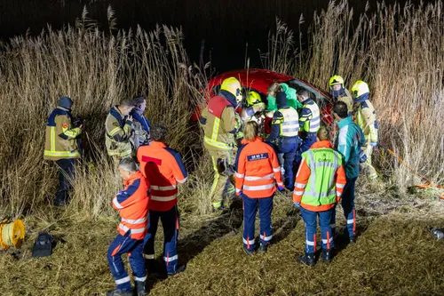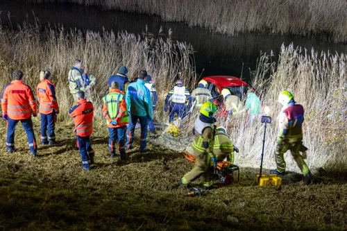 Een voertuig raakte van de weg en kwam in een sloot naast de