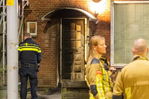 een woningbrand, maar later bleek dat het alleen de voordeur van de woning ging
