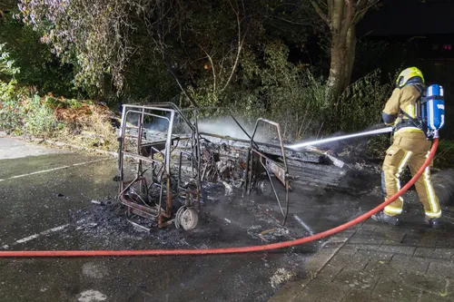 rond 00.15 uur een flinke brand gewoed in een brommobiel op de Jan van