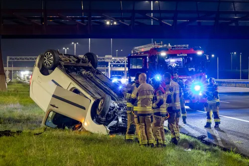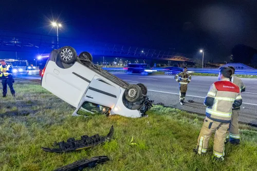 Haag, net na de N201, op zijn dak terechtgekomen. Het ongeval vond plaats rond