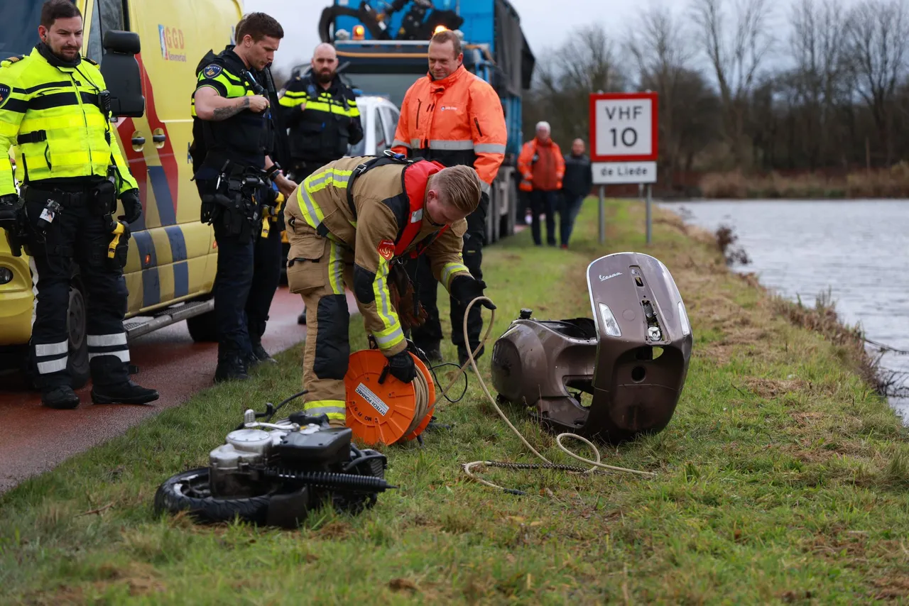In het water bij de Vijfhuizerdijk werd een scooter aangetroffen. Of eer sprake is geweest van een ongeval of dat de scooter in het water is gedumpt is niet duidelijk.