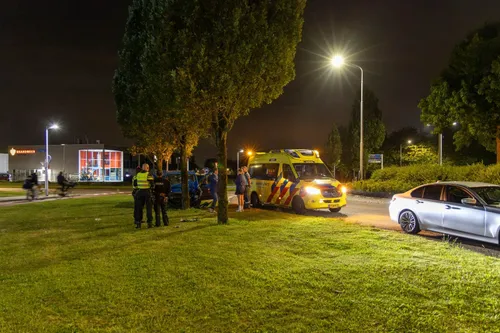 tegen een boom aanreed op de rotonde, kruising Boekweitstraat en Luzernestraat