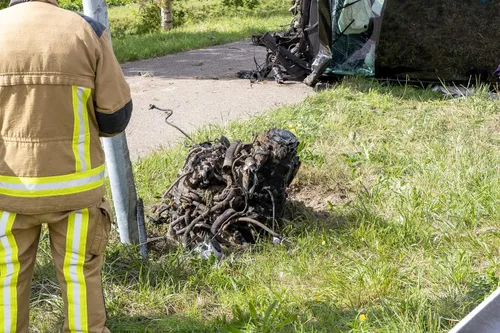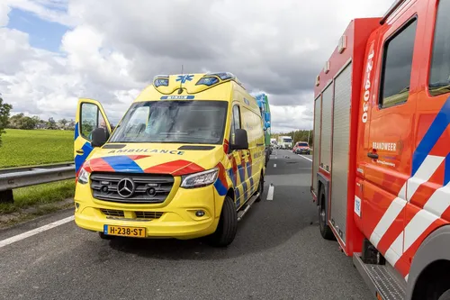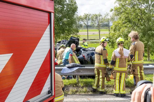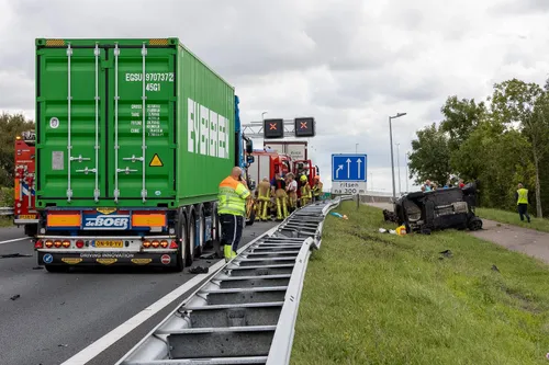 stuur kwijtgeraakt en met de auto over de vangrail over de vangrail geslingerd. De snelweg in