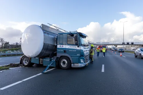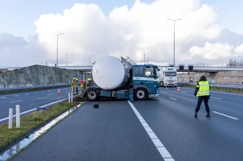 geen andere auto's betrokken, maar het bergen van de vrachtwagen duurt naar