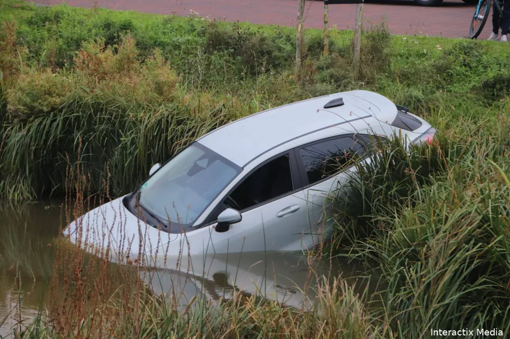 De auto kwam door onbekende reden in de sloot terecht. De bestuurder van het voertuig wist snel uit het voertuig te komen.