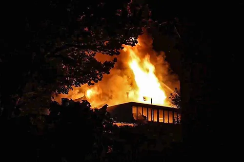 eigendommen in vlammen opgingen. Hij reageerde geëmotioneerd.