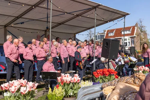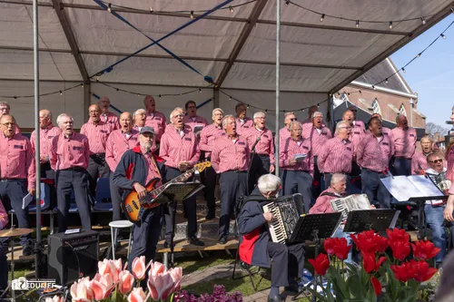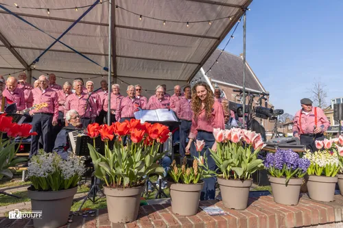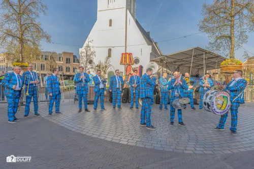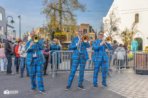 Noordwijkerhout - Vrijdagavond 11 april vierde Noordwijkerhout een feestje rond het witte kerkje in het centrum. Inwoners en veel bezoekers waaronder buitenlandse toeristen genoten van diverse straatartiesten, koorzang en blaasorkesten.