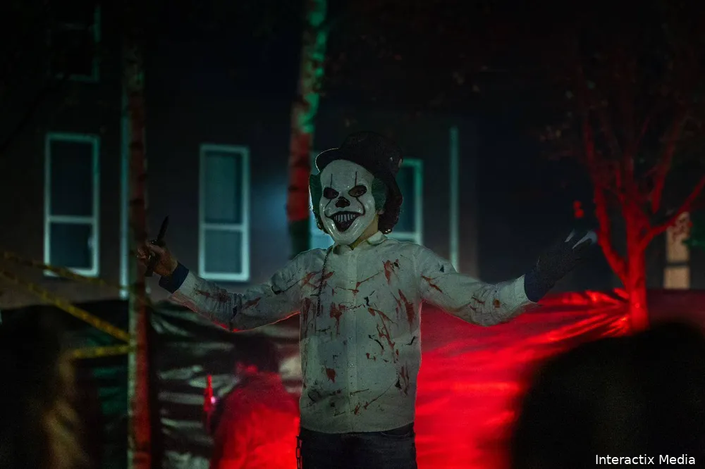 Verspreid door de wijk waren verschillende scarezones te vinden. Niemand wist wat er in het volgende griezelhuis zou gebeuren. Kinderen en volwassenen werden keer op keer verrast, soms met een gil en soms met een lach.