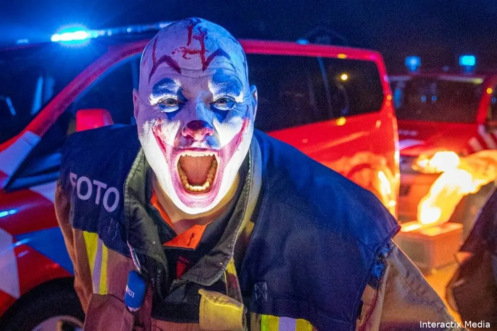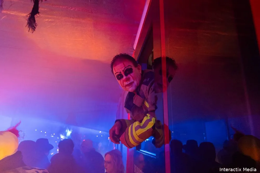 Ook de brandweer deed dit jaar weer enthousiast mee. Brandweermannen en kinderen van de jeugdbrandweer liepen verkleed rond als angstaanjagende figuren en lieten mensen flink schrikken. Op één plek liep je tussen twee brandweervoertuigen met een groot zeil eroverheen door. Onder het zeil hoorde je enge geluiden en plotseling doken er griezels op die iedereen lieten opschrikken.