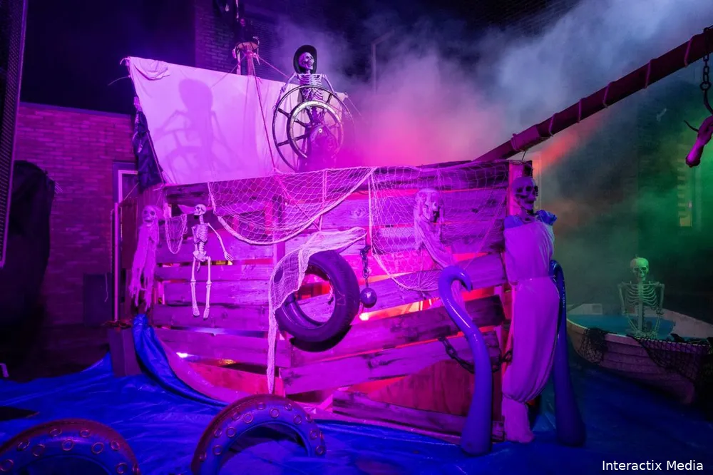Verderop in de wijk stond een groot zelfgebouwd spookschip waar bezoekers langs liepen tussen rook en enge muziek. Iets verder was een spookhuis waar je zigzaggend doorheen moest. Achter elke hoek kon iemand opduiken. Echte scareactors maakten het extra spannend en zorgden voor flink wat gegil.