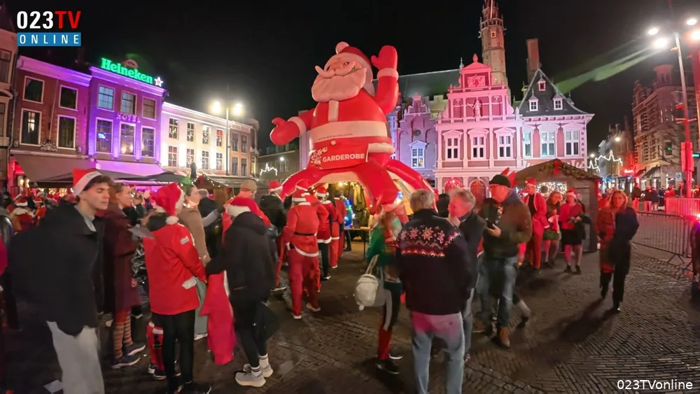 HAARLEM - Op vrijdagavond 19 december stond de Haarlemse binnenstad volledig in het teken van de inmiddels traditionele SantaRun. Voor de elfde keer trok een kleurrijk lint van kerstmannen, -engelen en sneeuwpoppen door de Muggenstad om een route van drie kilometer af te leggen door feestelijk verlichte straten.