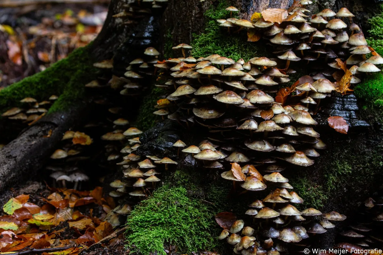 en het vele oude hout barst het hier van de paddenstoelen. Hier spot je de