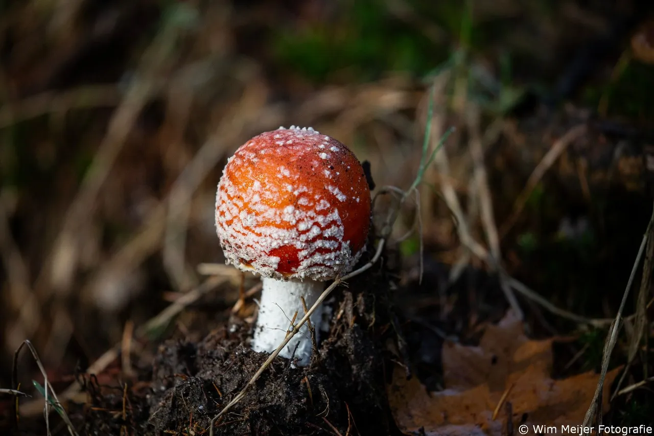 opvallende vliegenzwam met zijn felrode hoed en witte stippen. Ze staan vaak
