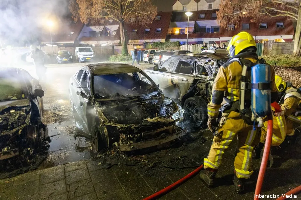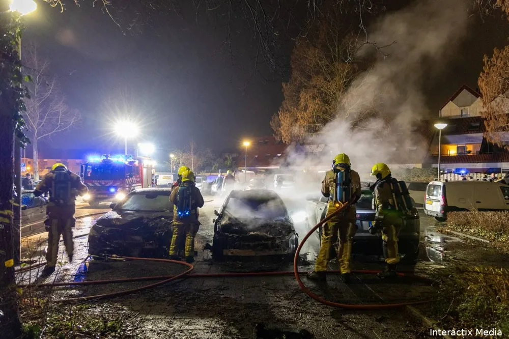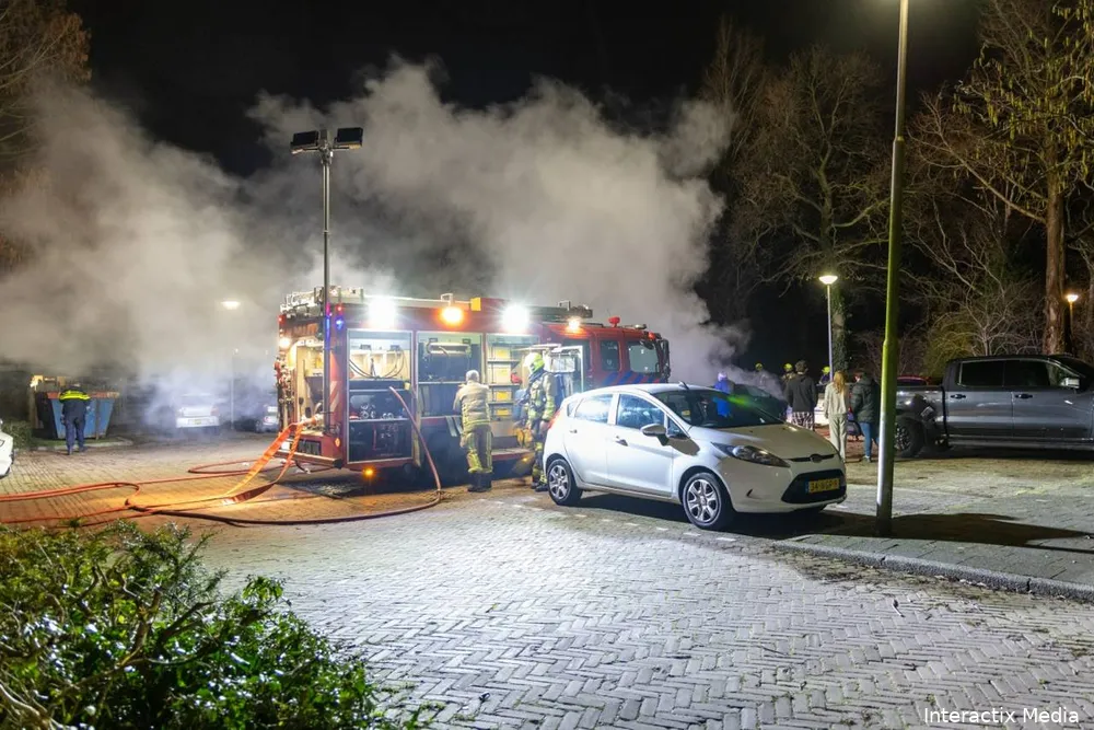 Ter plaatse bleek een personenauto volledig in brand te staan. Ondanks het snelle optreden van de brandweer kon niet worden voorkomen dat het vuur zich verspreidde naar twee geparkeerde voertuigen naast de brandende auto. Ook deze auto’s raakten daarbij flink beschadigd.