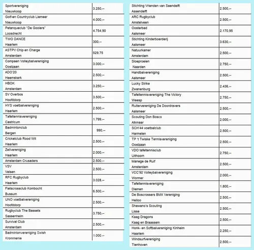 In 2024 ontvingen in totaal 82 sportclubs en verenigingen